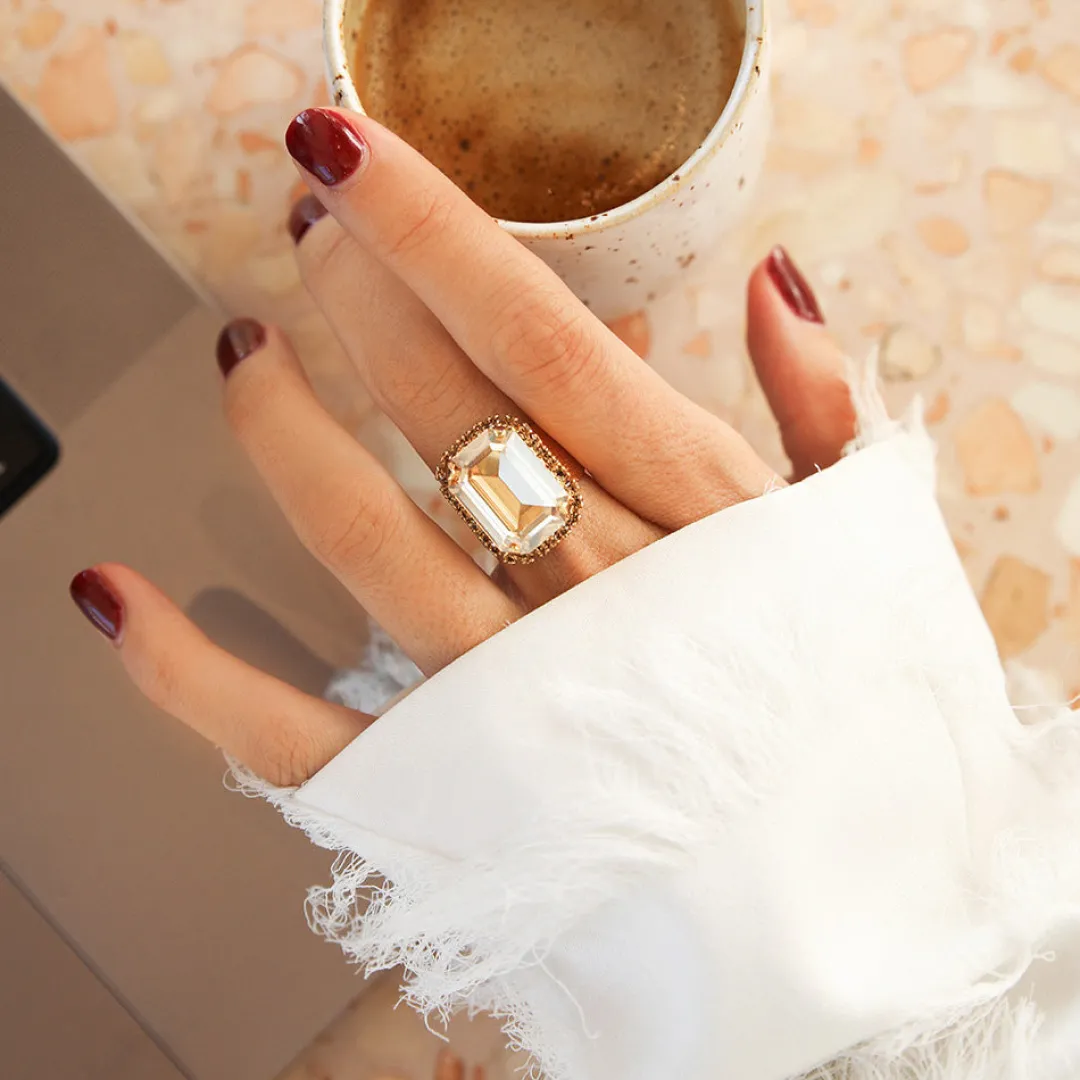 Var Vackra Lydia Cocktailring Ar En Elegant Ring Inspirerad Av Det Glamorosa Och Romantiska 1920-Talet. En Rektangular Kristall Omsluten Av Sma Gnistrande Stenar.