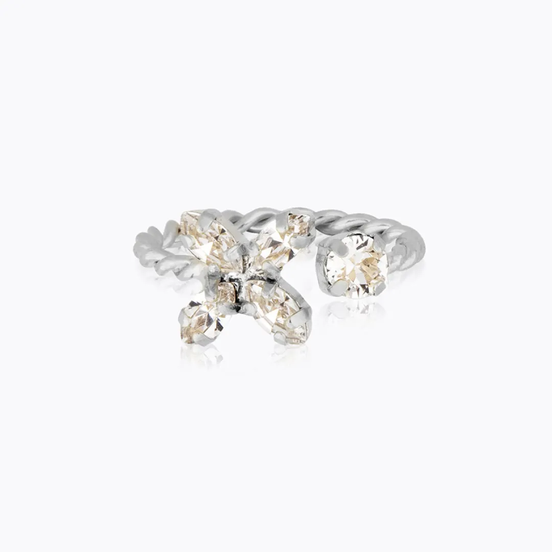 Crystal Star Ring Ar En Vacker Ring Med En Gnistrande Stjarnformad Kristall I Ena Anden Och En Liten Kristall I Den Andra Pa En Twistad Skena Gjord Av Forgylld Massing I 18K Guld Eller Rhodium. Ringen Ar Justerbar For Att Passa Just Ditt Finger. Ringen Ar Nagot Alldeles Extra Och Det Ultimata Smycket Som Passar Till Allt Och Kommer Lata Dig Lysa Som Den Stjarna Du Ar.