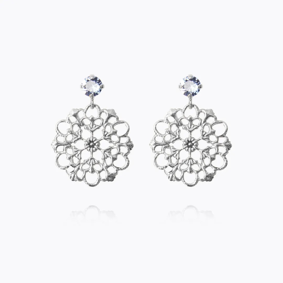 Andrea Earrings Features An Elegant And Feminine Design With A Dangling Floral Motif And A Petite Crystal On Top. Style These Together With Your Favourite Summer Dress For The Ultimate Chic Look. Choose Between Crystal And Light Sapphire.
