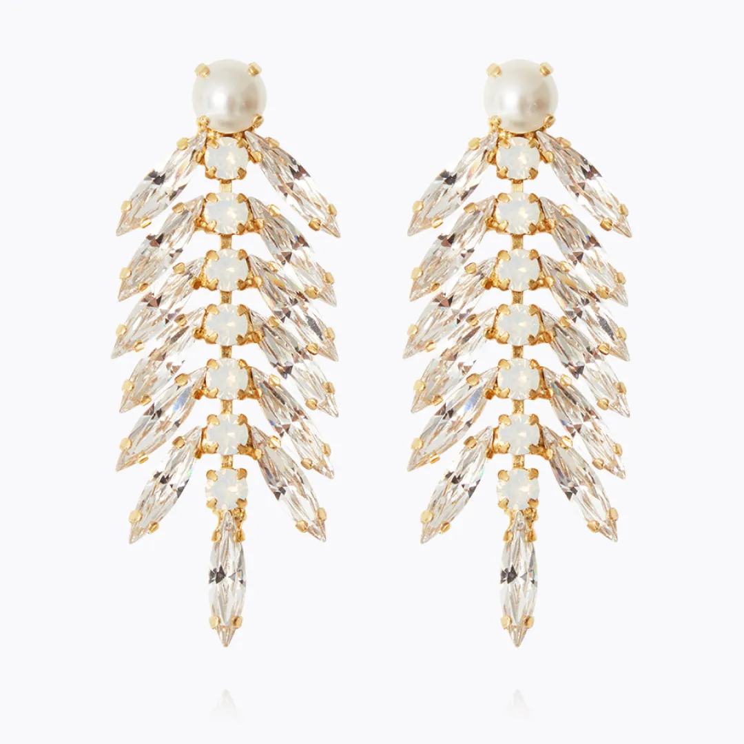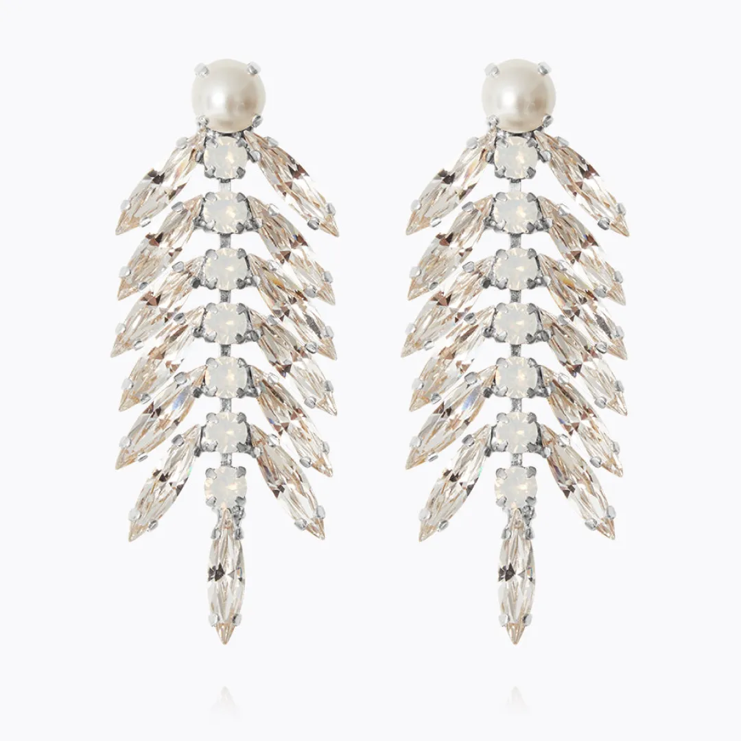 Ett Par Fjaderliknande Örhängen Med En Parla Upptill – Designade Med Tanke Att Kunna Anvandas Bade Till Brollopet, Till Fest Och Till Vardags.