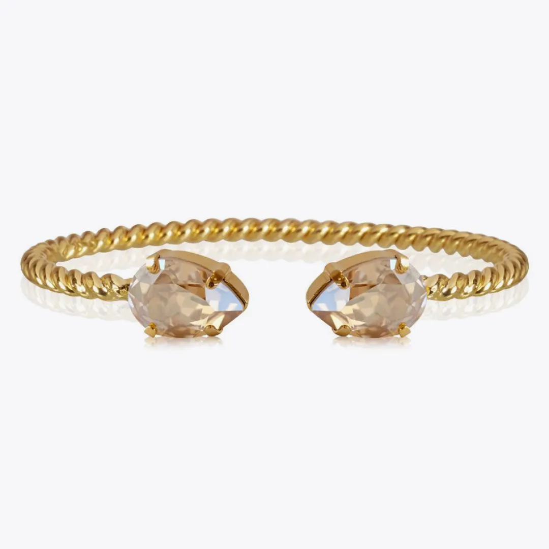 Vart Klassiska Mini Drop Bracelet Ar En Stilfull Detalj Pa Din Handled Och Gnistrar Tack Vare Sina Tva Droppformade Kristaller Av Hogsta Kvalitet. Armbandet Har En Kansla Av Rep Tack Vare Den Vackert Vridna Metallen. Storleken Kan Justeras For Att Passa Just Din Handled. Detta Eleganta Och Gnistrande Smycke Passar Alla Tillfallen.