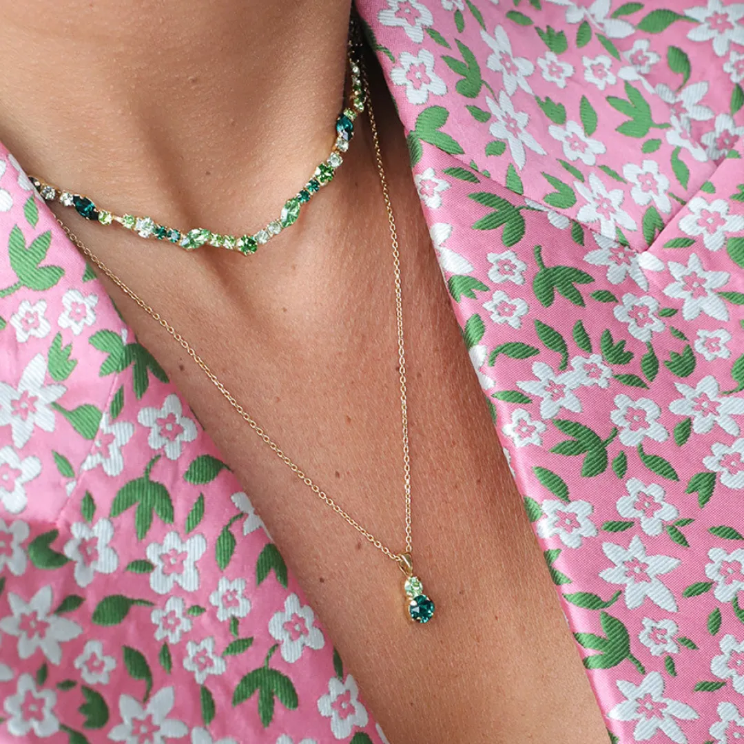 Leah Necklace Ar Ett Vackert Halsband Bestaende Tva Runda Gnistrande Kristaller Av Hogsta Kvalitet. Perfekt For Dig Som Alskar Ett Diskret Vardagshalsband, Men Som Anda Star Ut Med Sin Fargkombination. Komplettera Din Look Genom Att Matcha Dem Med Leah Earrings.