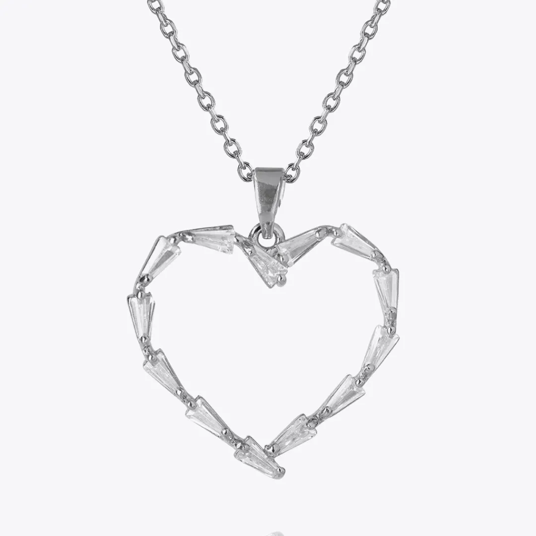 A Meaningful Symbol Dressed In Crystals, Our Baguette Heart Necklace Will Definitely Be Appreciated By Your Special Someone. This Glistening Pendant Has The Shape Of A Heart Made Of The Highest Quality Crystals. Perfect To Combine With Our Baguette Heart Earrings.