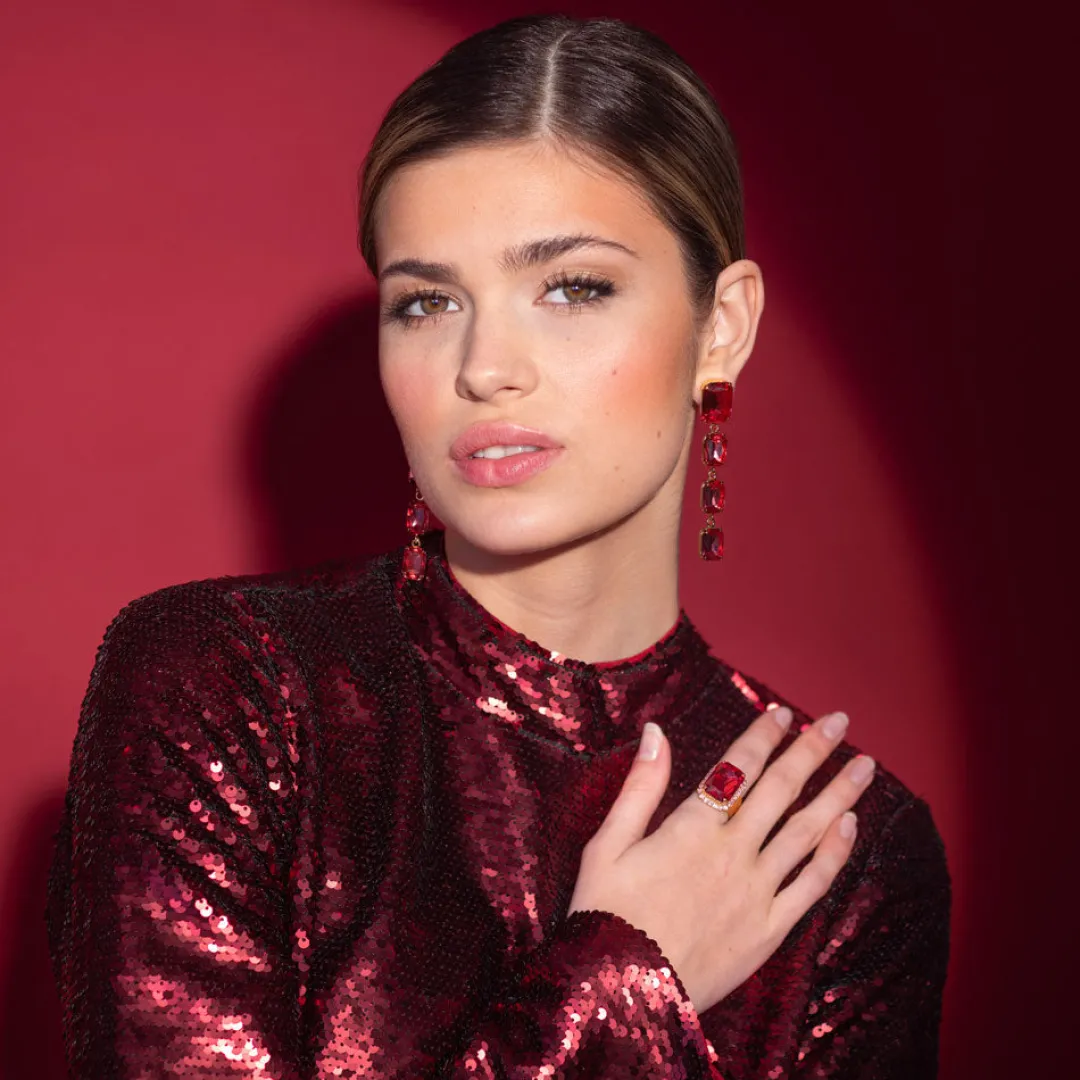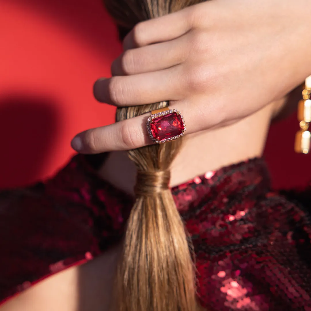 Var Vackra Lydia Cocktailring Ar En Elegant Ring Inspirerad Av Det Glamorosa Och Romantiska 1920-Talet. En Rektangular Kristall Omsluten Av Sma Gnistrande Stenar.