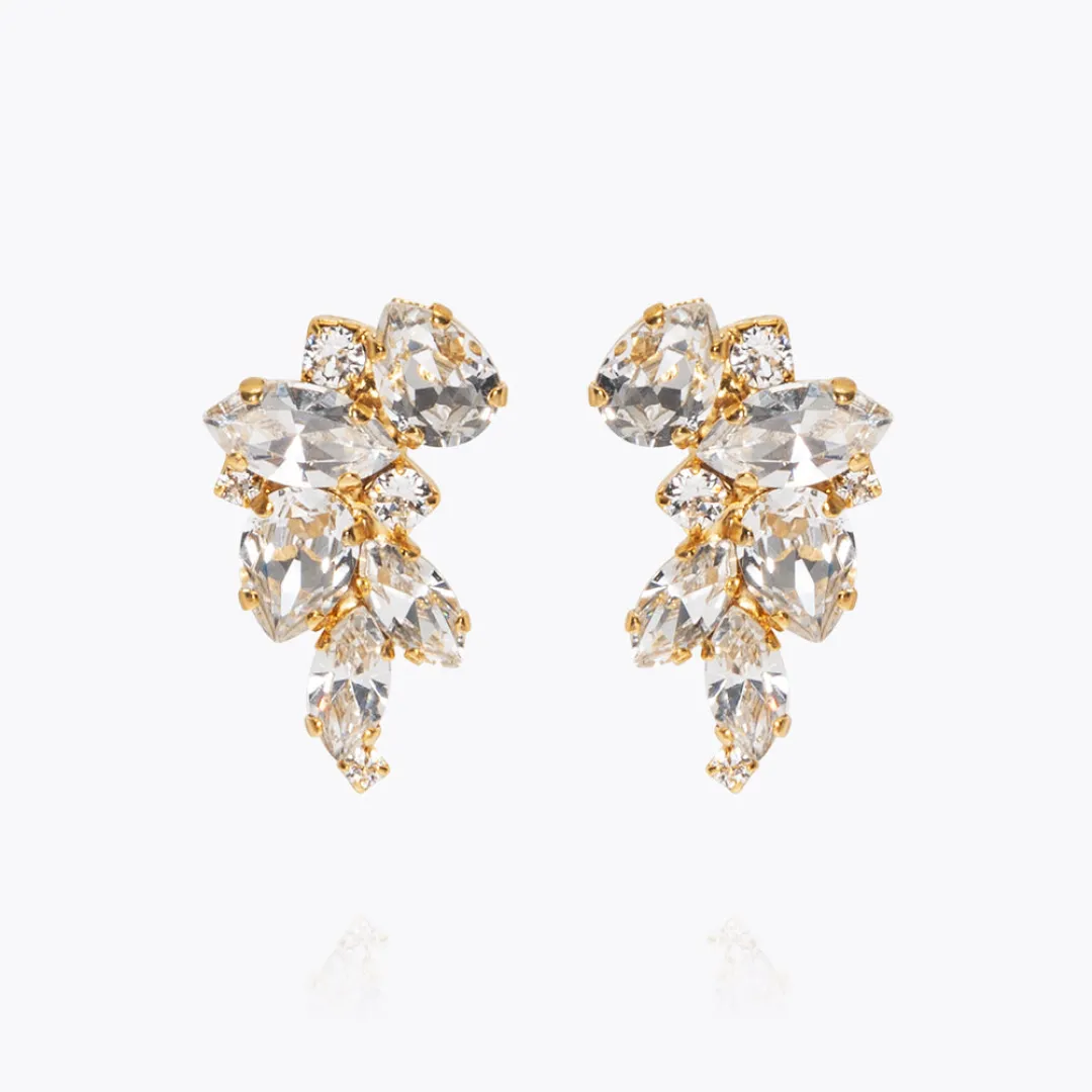 Make A Bold Fashion Statement With Our Beautiful Demi Earrings. The Design Features A Delicate Set With A Cluster Of Sparkling Quality Crystals That Gives A Beautiful Brilliance Together! Available In Crystal And Pastel Combo.