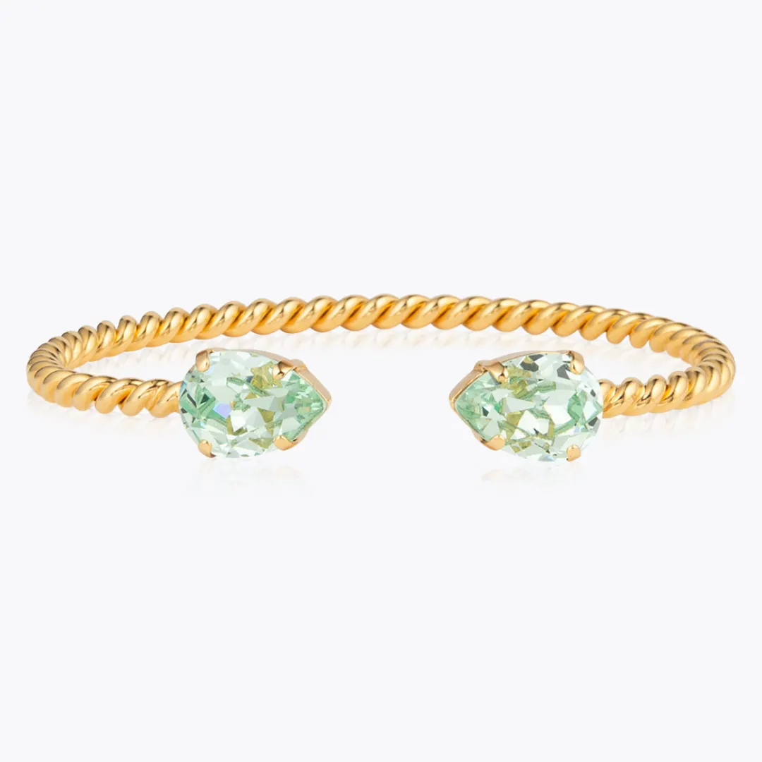 Vart Klassiska Mini Drop Bracelet Ar En Stilfull Detalj Pa Din Handled Och Gnistrar Tack Vare Sina Tva Droppformade Kristaller Av Hogsta Kvalitet. Armbandet Har En Kansla Av Rep Tack Vare Den Vackert Vridna Metallen. Storleken Kan Justeras For Att Passa Just Din Handled. Detta Eleganta Och Gnistrande Smycke Passar Alla Tillfallen.