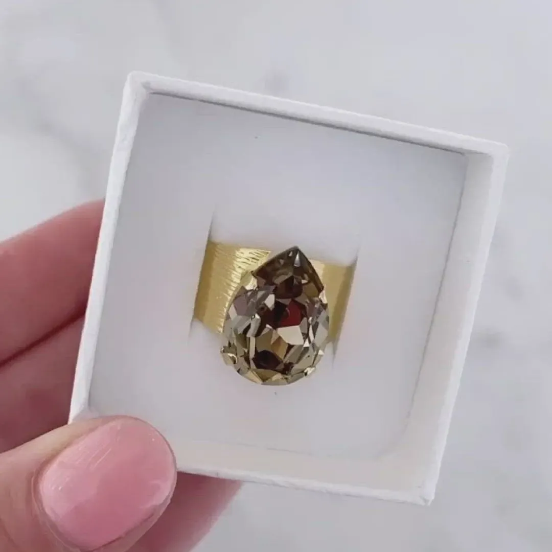 Var Classic Drop Ring Kommer Med En Vacker Gnistrande Droppformad Kristall Av Hogsta Kvalitet. Ringen Har En Oppen Baksida Som Latt Kan Justeras For Att Passa Perfekt Pa Din Finger.